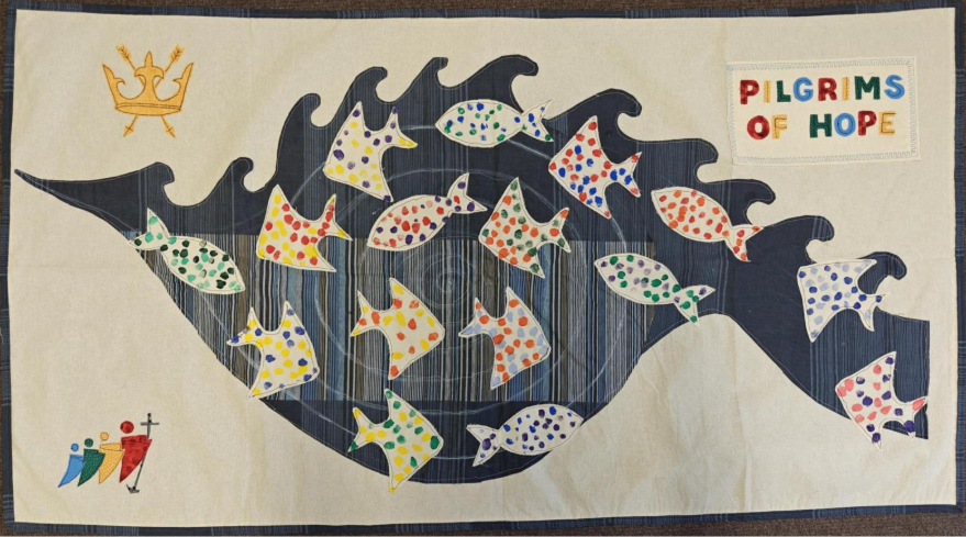 On Friday 21st November 2025 we will be marking Jubilee Celebration Day by celebrating Mass in church with our Parish Priest. As part of our Jubilee celebrations, have created a new banner for our school that all the children were involved in making.